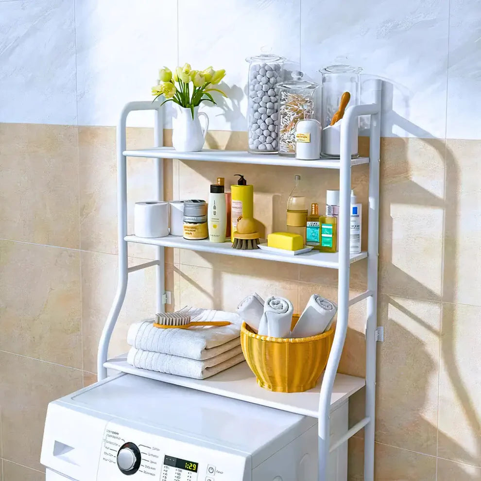 Ova polica se postavlja direktno iznad mašine za veš i omogućava ti da sve što koristiš svakodnevno – peškire, deterdžente, kozmetiku, papir i sitnice – držiš na dohvat ruke.